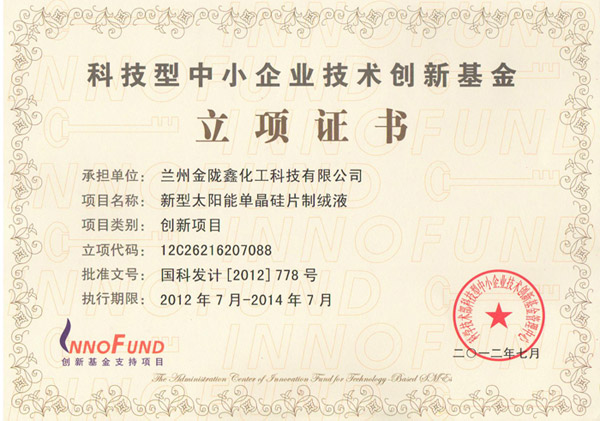 國家創(chuàng)新基金立項證書