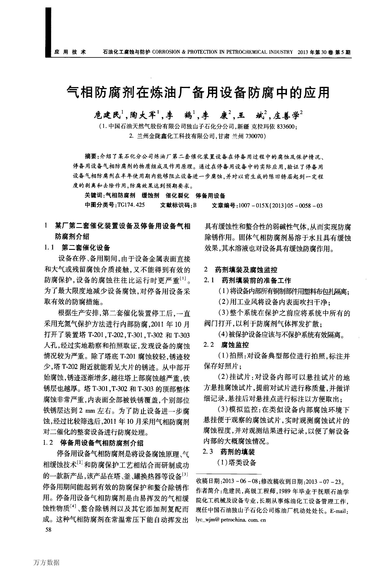 《停備用設(shè)備氣相防腐劑在煉油廠備用設(shè)備防腐中的應(yīng)用》正式發(fā)表